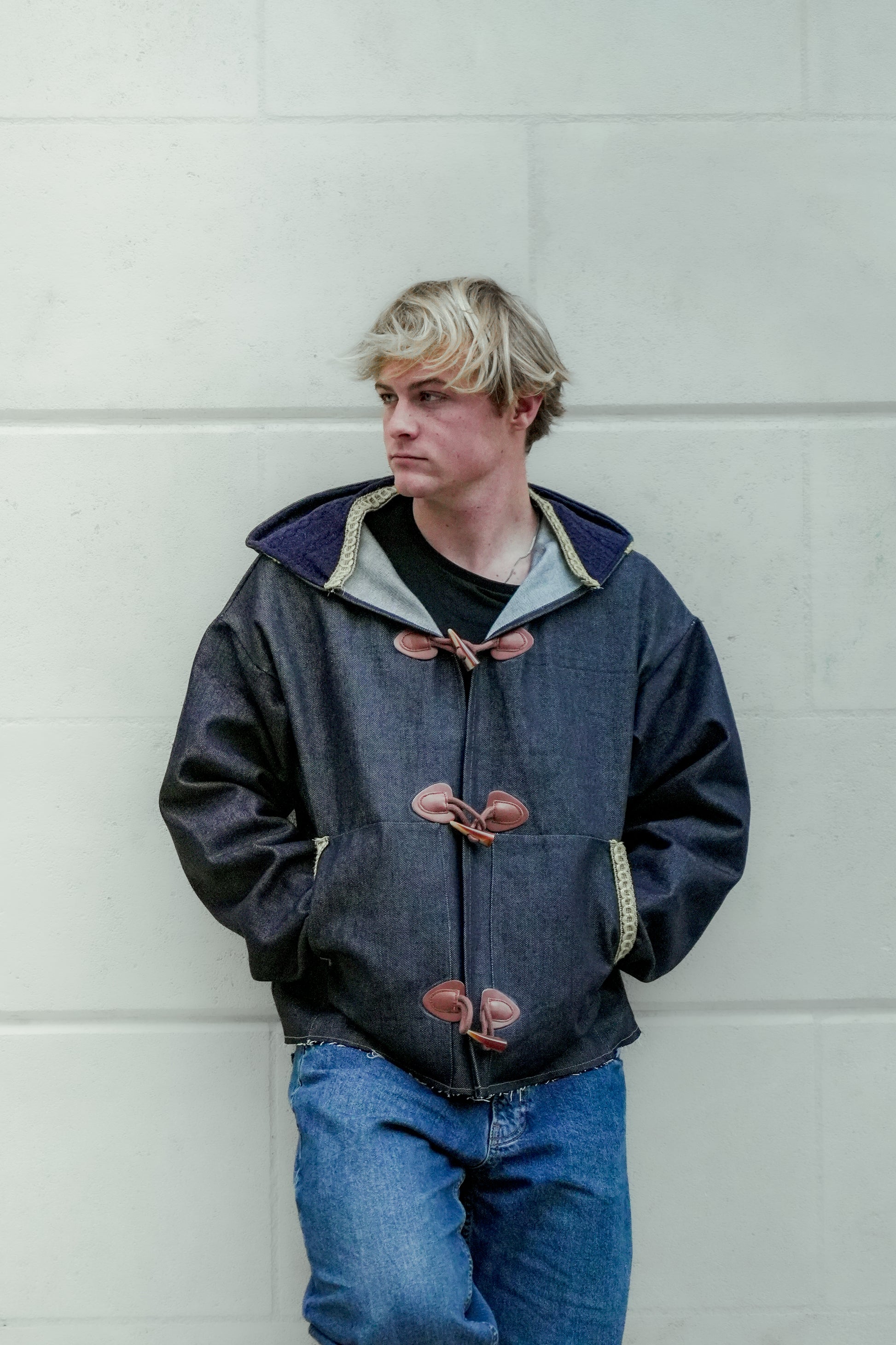 Plongez dans un style unique alliant authenticité, confort et modernité avec cette veste à capuche confectionnée dans un denim brut de haute qualité. Inspirée du caban traditionnel, cette pièce se distingue par ses attaches façon duffle-coat en cuir et ses détails de finitions soignés.
